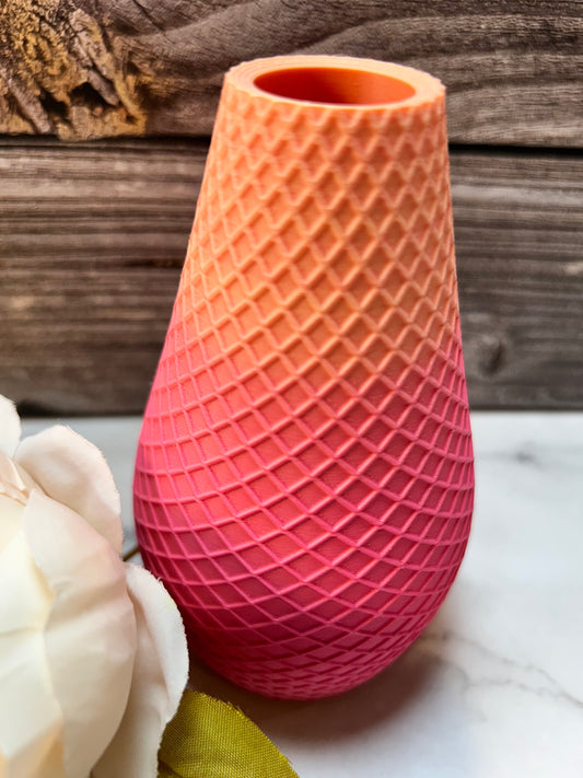 Diamond Pattern Ombre vase, Pink Coral Color, Use with faux flowers or real flowers